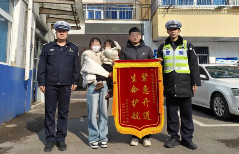 1月17日,淮北市交警支队渠沟大队民警开展日常巡逻执勤时,发现道路中央有一名家长正焦急地对一名孩童实施急救,孩童面色异常,情况十分危急。民警立即下车上前,经快速询问得知,幼童被异物卡喉出现呼吸不畅等症状,家长尝试了多种急救方法都未能缓解。考虑到孩童生命体征不稳,民警当机立断决定用巡逻警车开辟“生命通道”,将孩童送往最近的医院救治。