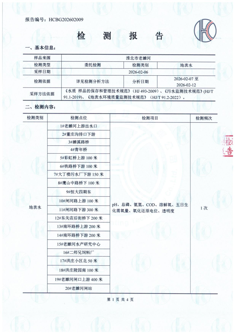 2026年2月份老濉河水质检测报告