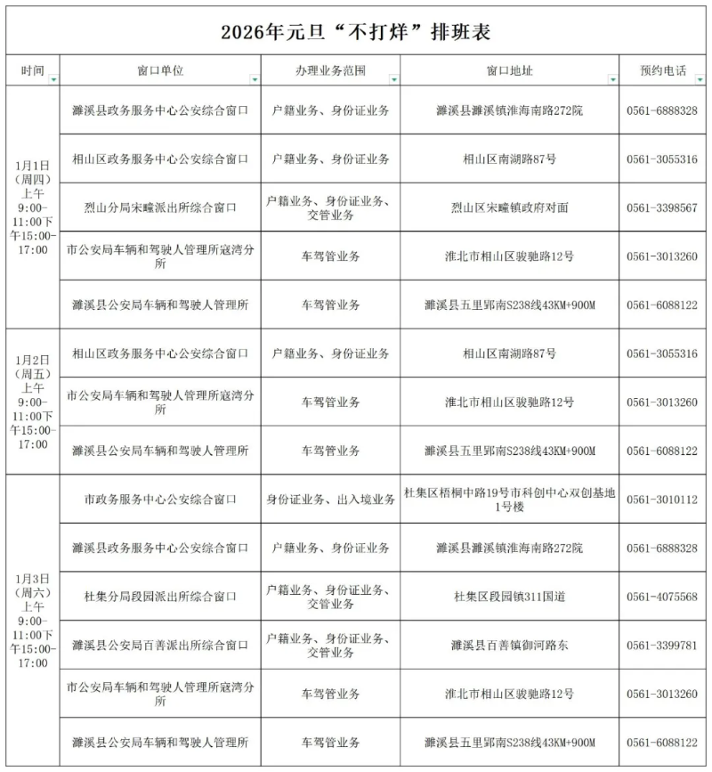 元旦假期要到啦!公安服务窗口放假吗?淮北市公安局为方便市民朋友们和企业办事,公安政务窗口提供,元旦假期“不打烊”暖心服务。