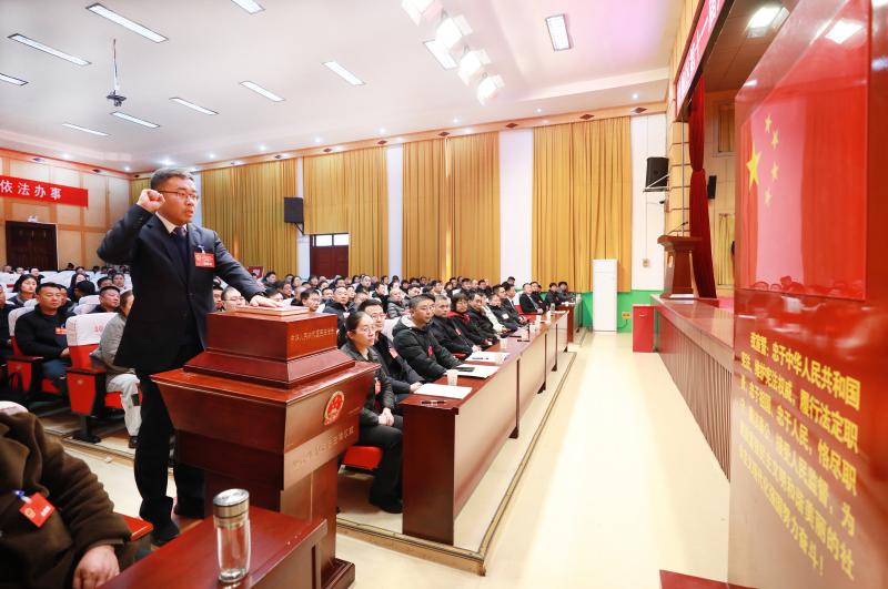 大会举行了宪法宣誓仪式,新当选的区长魏辉到宣誓席宣誓。