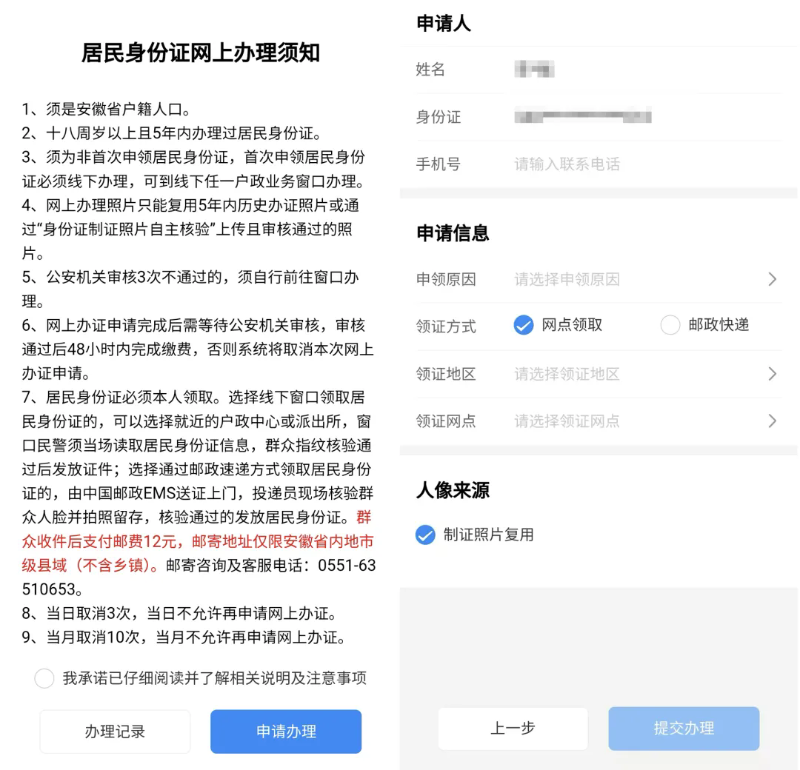 温馨提示:办理之前认真阅读办理须知页面上的相关说明和注意事项,提交符合规定的照片,以免审核不通过。
