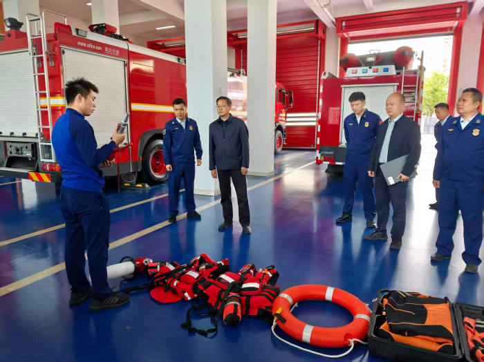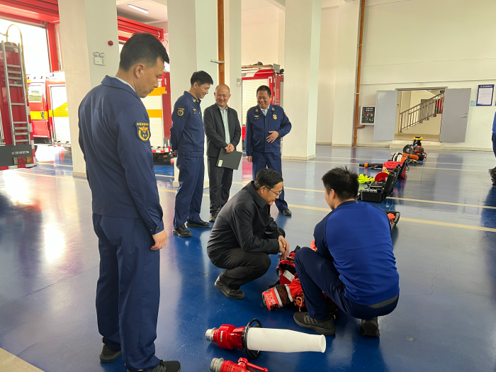 调研过程中,调研组坚持问题导向、实效导向,通过现场点验、查阅台账、实地观摩等多种方式,全面细致掌握队伍人员、装备建设情况。消防专业队负责人详细介绍了专业队训练科目和训练计划,以及当前取得的训练成效,同时,重点介绍了检查消防车、破拆工具、救援装备、防护物资等的数量配备、性能状态及维护保养状况。随后,李明军对消防专业队进行点验。