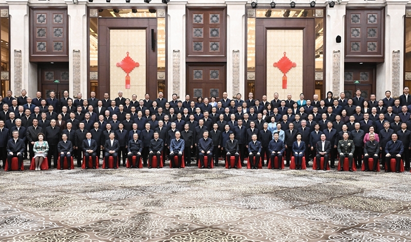 9月23日下午,中共中央总书记、国家主席、中央军委主席习近平在乌鲁木齐亲切接见新疆各族各界代表,并同大家合影留念。新华社记者 燕雁 摄