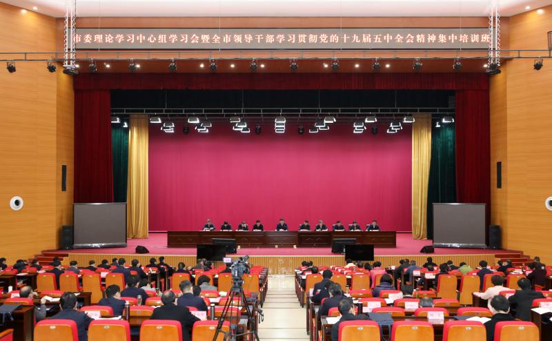 3月11日上午,市委理论学习中心组学习会暨全市领导干部学习贯彻党的十九届五中全会精神集中培训班开班式在市委党校举行。市委书记张永参加会议并讲话。市人大常委会主任方宗泽,市政协主席谌伟,市委副书记朱浩东,市委常委,其他现职市厅级领导干部参加开班式。