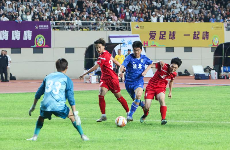 4月26日晚,安徽省青少年足球联赛男子高中组甲组季军争夺战首战在市体育场打响。主场作战的淮北队凭借出色发挥,最终以6比0战胜芜湖队。市委书记汪华东现场观看比赛,看望慰问淮北队教练员及全体队员,勉励球队顽强拼搏、奋勇争先,赛出风格、赛出水平,充分展现淮北健儿的风采。市领导孙艳辉、徐胜利等现场观看比赛。