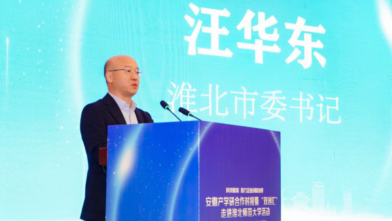 汪华东指出此次活动是深入贯彻落实习近平总书记考察安徽重要讲话精神的具体举措,也是推动我市转型发展的必然要求。近年来,淮北立足“绿色转型发展示范城市、国家重要新型综合能源基地”定位,深入实施科教兴市、人才强市、创新驱动发展战略,新的动能不断累积、发展后劲更加充足。淮北师范大学是淮北亮丽的城市名片,也是我市最宝贵的科创资源。希望淮北师范大学充分发挥自身优势,聚焦我市产业发展需求,加快更多科技成果在淮转化落地,推动市校合作不断向更高水平、更宽领域、更深层次拓展;鼓励学校师生走出象牙塔,走进工厂车间、田间地头,把论文写在大地上,为淮北高质量转型发展提供更多智力支撑。市委、市政府将一如既往高度重视科技创新工作,为科技成果转化提供全流程服务、全要素保障,努力让更多“科技之花”结出“产业之果”。