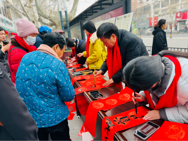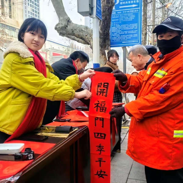 “手写的春联有温度、有感情,比买春联的更有年味!”刚领到三副春联的张大爷小心翼翼捧着墨迹未干的作品,脸上满是笑意,“这不仅是新年的祝福,更是咱们传统文化的味道。”活动中,主办方还特别将写好的春联和“福”字送到坚守岗位的环卫工人手中,让更多的群众也能感受到节日的温暖与关怀 。