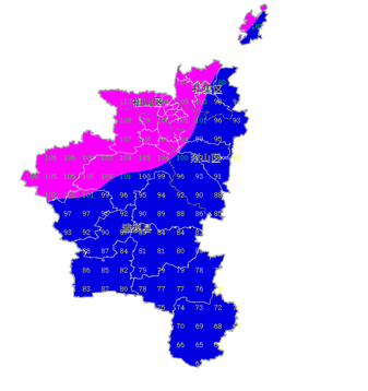 图1 11日08时-12日08时全市累计降水量预报 图2 12日08时-13日08时全市累计降水量预报