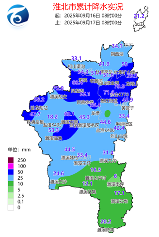 16日08时至今晨08时,我市出现明显降水,并伴有较强雷电、短时强降水、雷暴大风等强对流天气,孙疃以北普遍30-60毫米,以南10-20毫米。全市平均雨量42.1毫米,其中,相山区44.7毫米,杜集区30.8毫米,烈山区50.5毫米,濉溪县40.0毫米。淮北国家气象观测站31.2毫米,濉溪国家气象观测站54.3毫米。最大降水量79.9毫米,出现在京台高速烈山段,最大小时雨强31.4mm/h,出现在濉溪临涣,极大风速最大值25.7m/s(10级),出现在铁佛岳集。