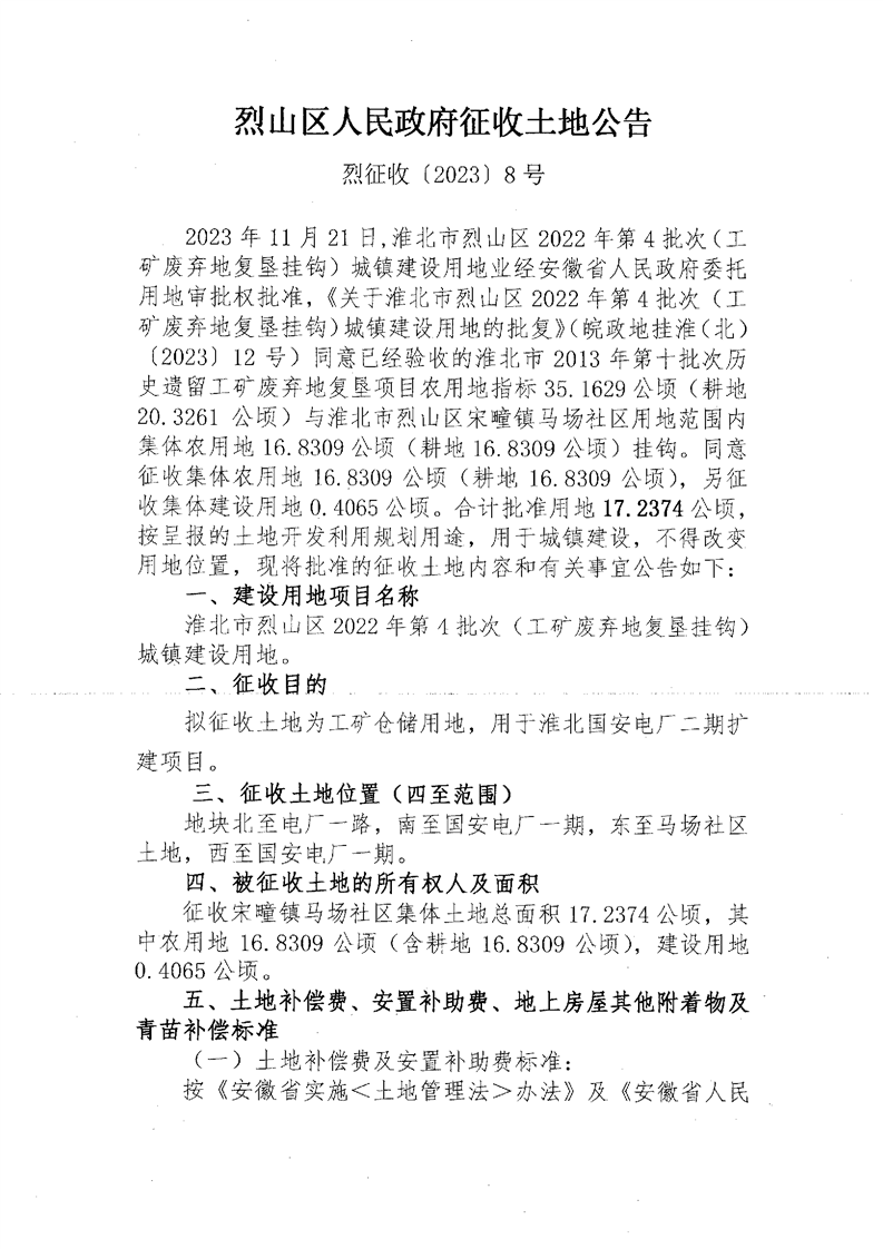 烈山区人民政府征收土地公告(淮北市烈山区2022年第4批次(工矿废弃地复垦挂钩)城镇建设用地)