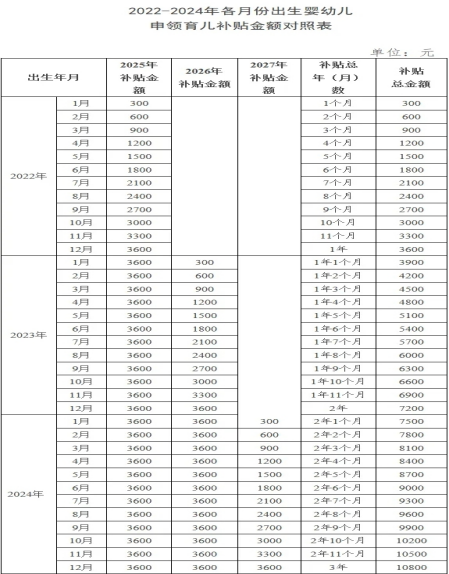 (1)2025年1月1日及以后出生的婴幼儿,可连续申领3年,共计10800元。