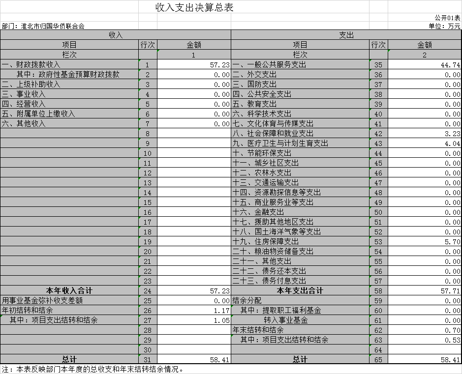 淮北市归国华侨联合会2018年收入支出决算总表