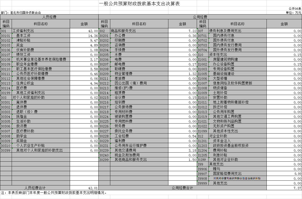 淮北市归国华侨联合会2018年一般公共预算财政拨款基本支出决算表
